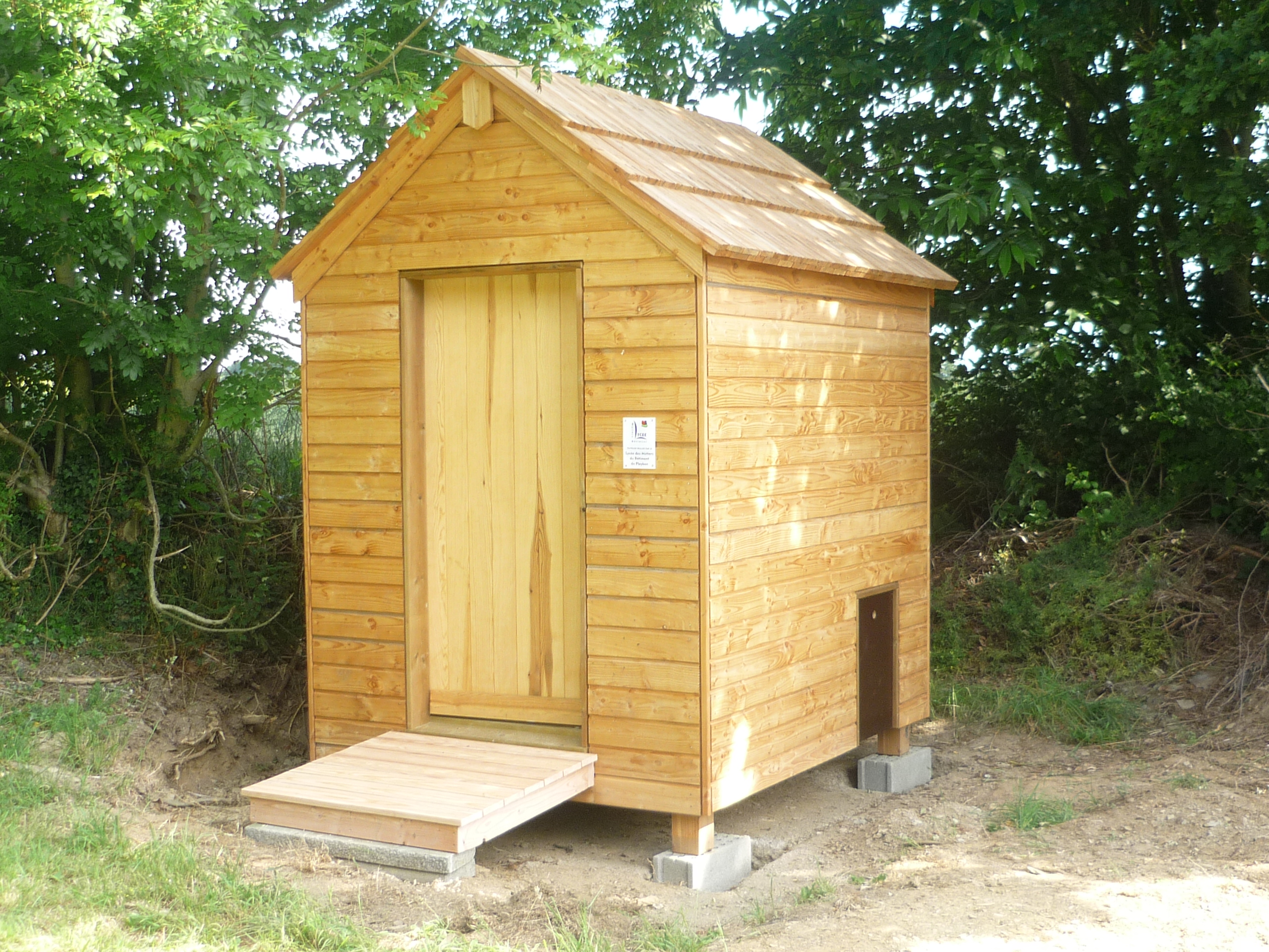 Les toilettes ont été réalisées sur le même principe et les mêmes matériaux qu’une maison ossature bois, avec un bardage et une couverture en Douglas.