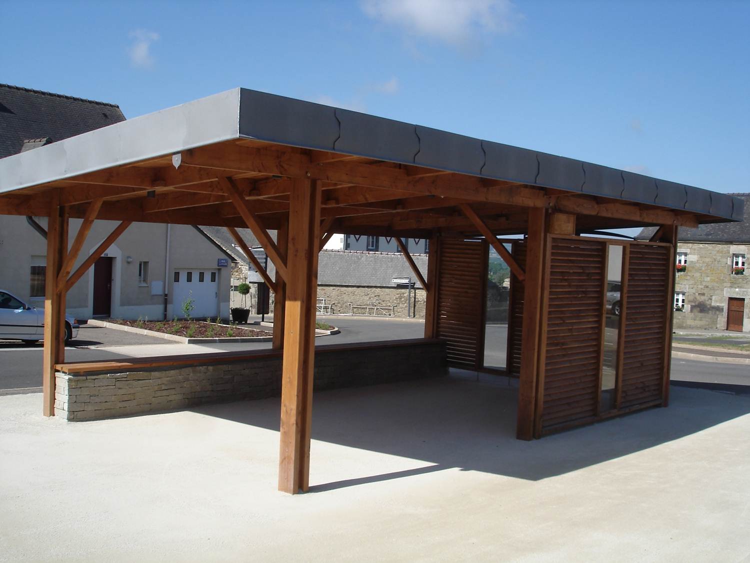 L’auvent est composé d’une charpente traditionnelle posée sur une structure poteaux. Le tout fabriqué en douglas.